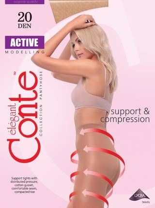 Колготки Conte Active 20 с поддерживающим эффектом и распределенным давлением по всей ноге,с сильным поддерживающим верхом. Хлопковая ластовица, плоские швы, уплотненный мысок. Размер 5 со вставкой.
