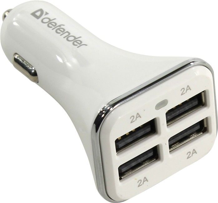 Автомобильный адаптер defender UCA-05, 4USB? 5V/8A, входное напряжение 12-24В, выходное напряжение 5В. Входной ток USB1-2000мА, USB2-2000мА,