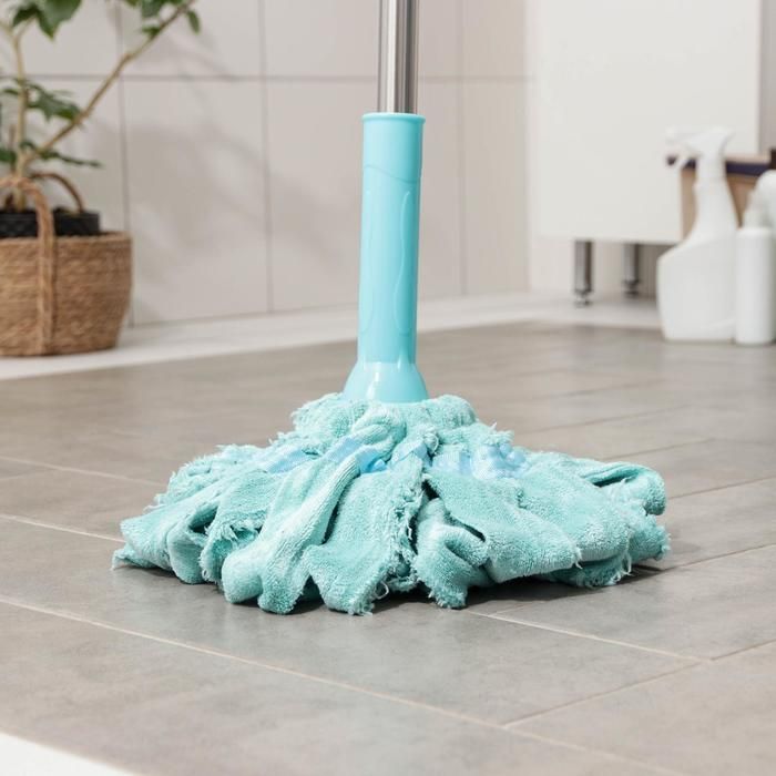 стальная ручка 130 см, насадка микрофибра, цвет голубой