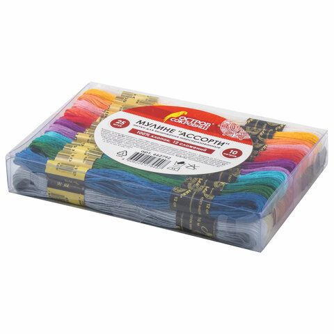 Набор ниток для вышивания (мулине) "АССОРТИ", 25 цветов по 10 м, х/б, ОСТРОВ СОКРОВИЩ