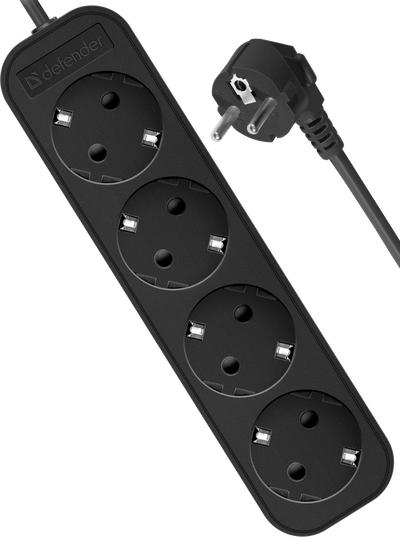4 розетки, мощность 2200 Вт, ток 10А, с/з, черный, 5,0 м