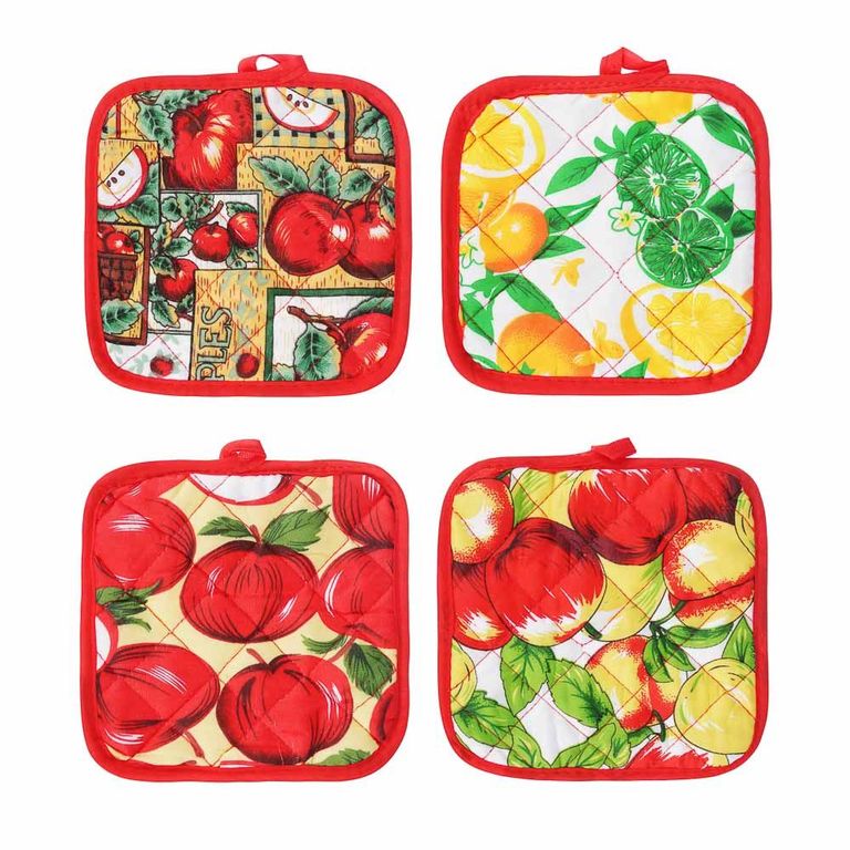 Прихватка - незаменимый помощник на любой кухне. Изделие выполнено натурального материала и оформлено красочным принтом. Прихватка мягкая, удобная и практичная. Она защитит ваши руки и предотвратит появление ожогов. Оригинальный дизайн позволит красиво дополнить интерьер кухни. С помощью текстильной петельки прихватку можно подвесить на крючок.