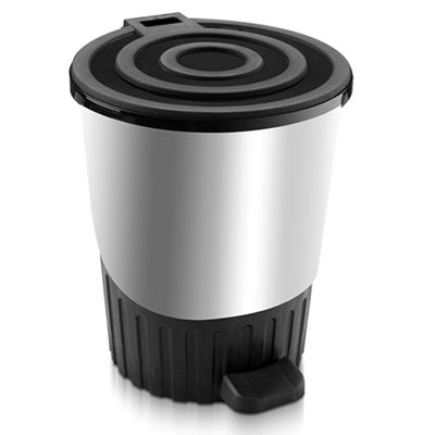 Ведро пластик для мусора 14л с педалью "Сатурн" серебро д28см h32,5см